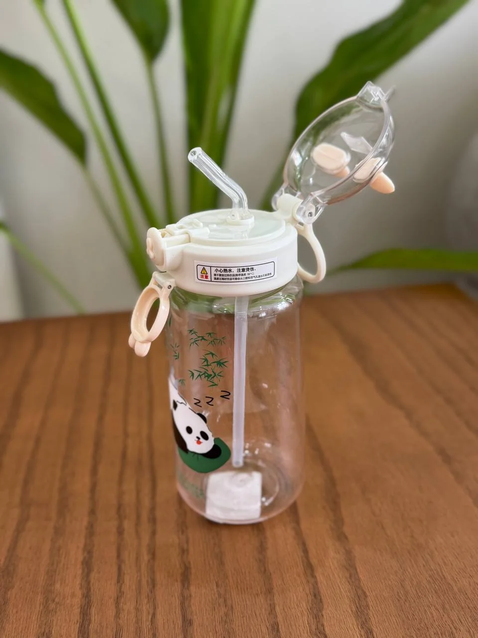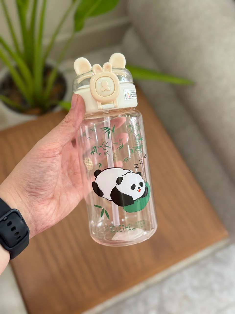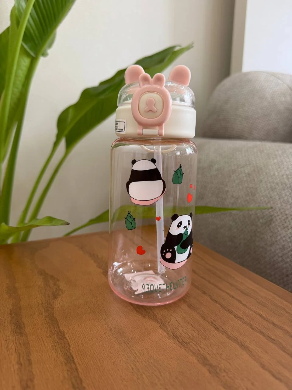 🐼بطری آب طرح پاندا 🐼چهار تا طرح و رنگ ناز داره🥰 🐼حجمش ۵۰۰ میل هست 🐼نی دار / دسته دار برای حمل راحت تر 🐼جنس بدنه : اکرولیک و نشکن .